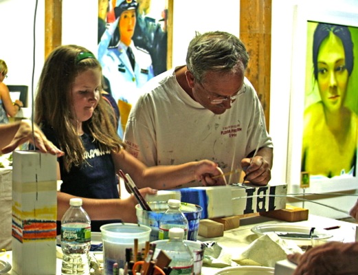 More than 40 members of the East Bay Community and beyond joined ART Night featured artist Tom Culora in his studio to create “Allegory of Friendship” – a sculpture comprised of buoy-like objects, each individually painted in an autobiographical fashion.