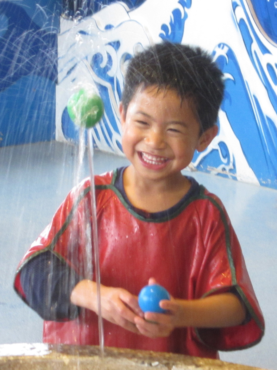 The waterplay in the exhibit invites children to problem solve, get creative, and challenge them to question their sensory surroundings.