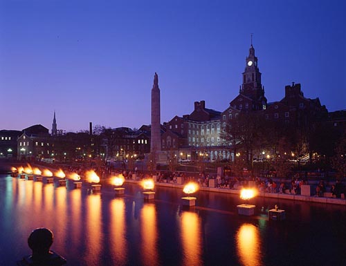 For the first time, the Rhode Island Philharmonic Orchestra will perform in concert with the lighting of the fires, beginning at 9pm (the fires light at sunset). The orchestra will be based at Turk's Head Plaza, and dancers from the Festival Ballet Providence will perform as well.