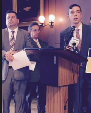 Jared Moffat, right, at last year's legalization bill introduction with Rep. Scott Slater and Sen. Josh MillerWhen the more conservative Speaker Mattiello replaced his more liberal predecessor Gordon Fox, the general sentiment was that the prospects for marijuana legalization in the state had just taken a huge hit.