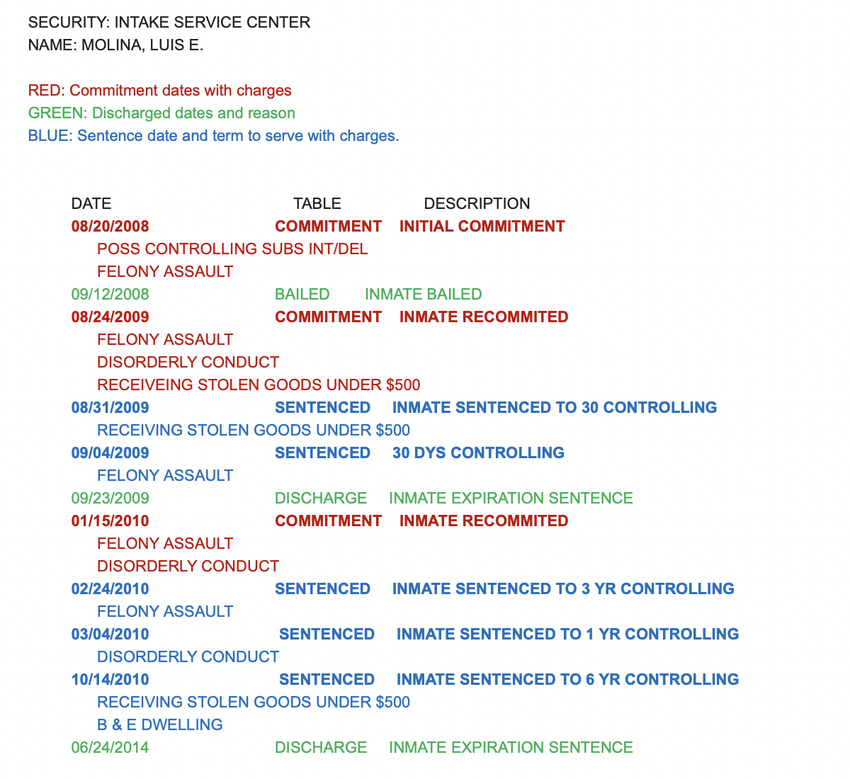 One of the men arrested, Luis Enrique Molina, already had a lengthy record of arrests and incarceration.