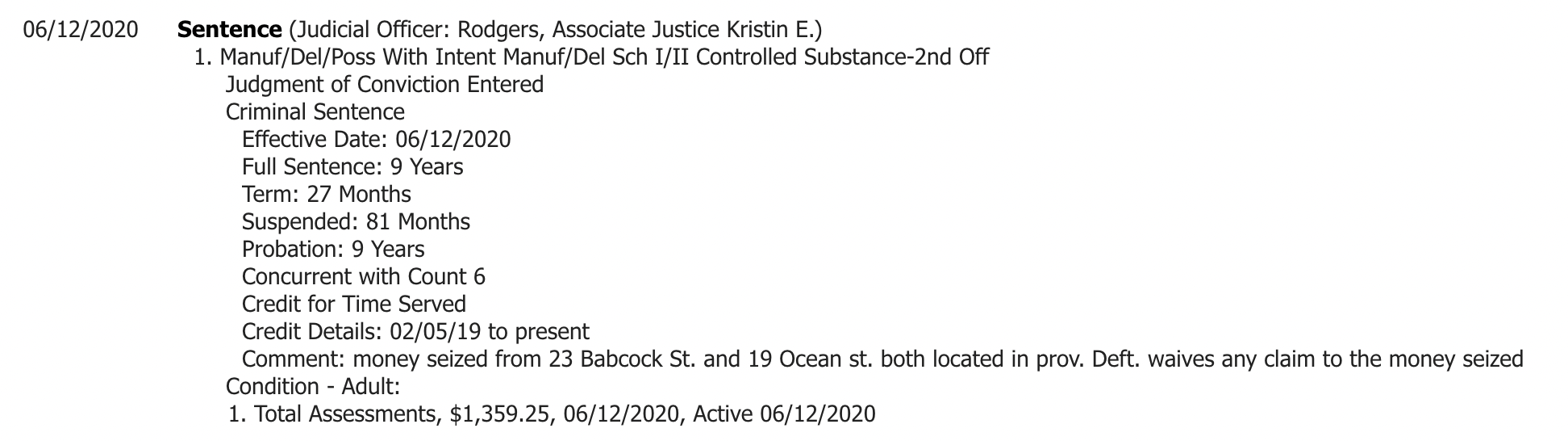 Court records show that on June 12, 2020, Judge Kristin Rodgers sentenced Molina to nine years on drug charges, after he had been charged with a dozen felonies related to both drugs and firearms stemming from the February 2019 State Police arrest.