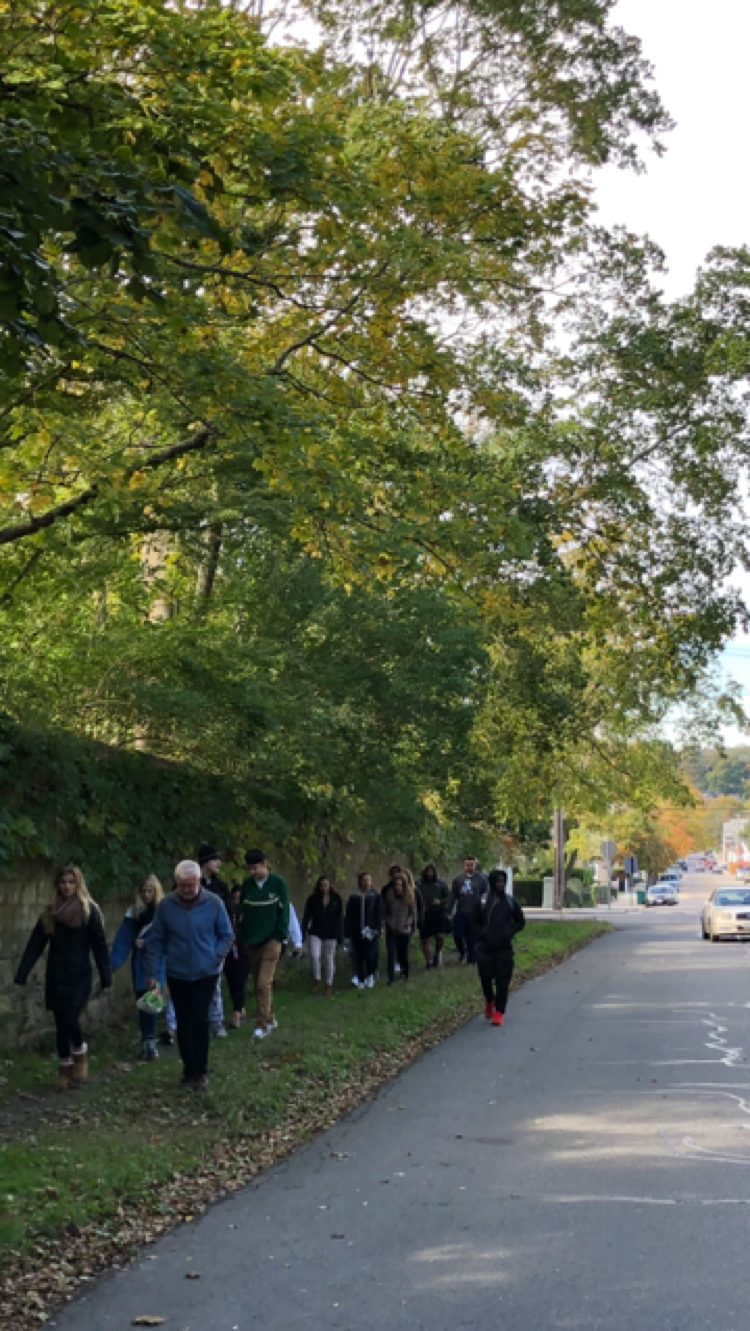 Below is a photo of a teacher leading students on a tour of the neighborhood walking along a centuries-old dirt path and spilling into the street. Experts will tell you, lack of sidewalks isn’t only an ADA issue, it’s a public safety issue.