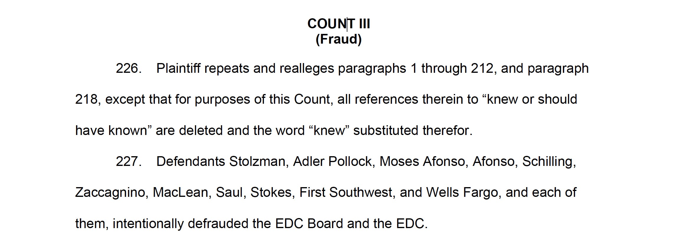 'Defendants Stolzman, Adler Pollock, Moses Afonso, Saul, Stokes, and First Southwest knew or should have known that 38 Studios would not be able to repay under either its 'worst case' or even its 'most likely' revenue projections. Such information was required to be given the EDC Board in order to make Saul’s affirmative representations concerning 'worst case' or 'most likely' projections not misleading," claimed the state's lawsuit.