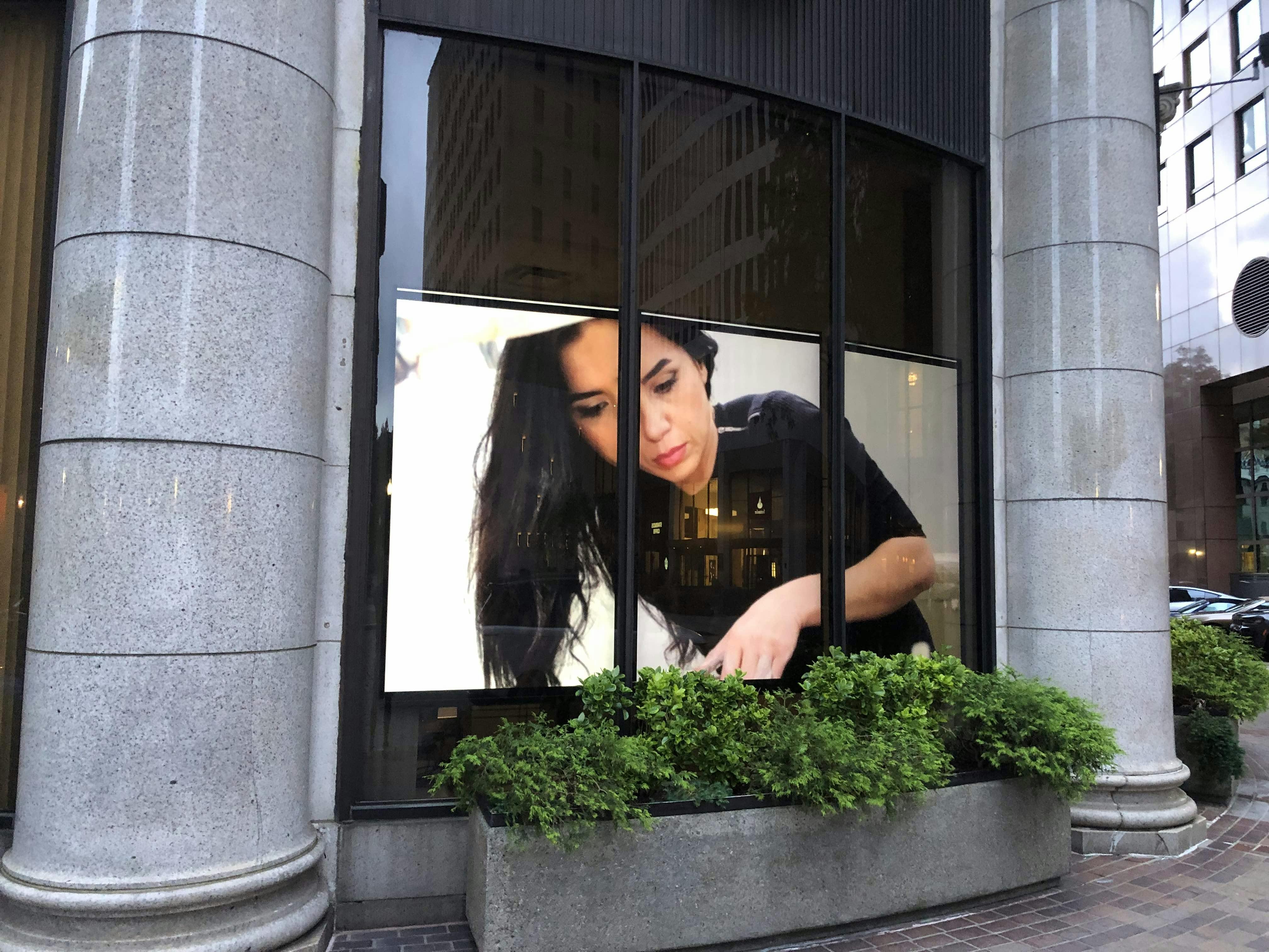 The initial “Multimedia Intersection” features nine of the top Rhode Island female artists and will be displayed on the big screen facing the street -- and then links, via a QR code, to articles and feature stories.