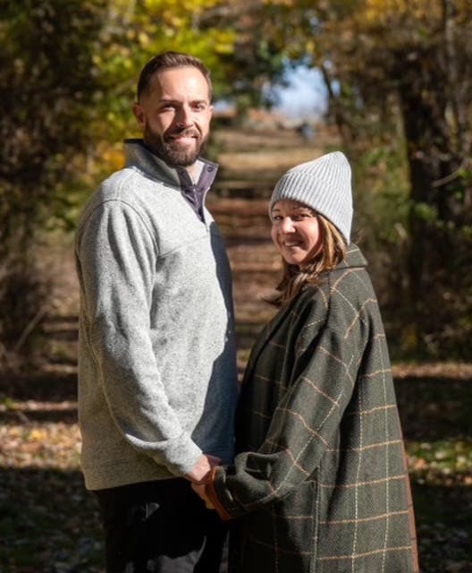 “He kept on saying he wanted a specific shot,” laughed Martin of her future father-in-law, of the location on a path framed with fall foliage. “He said OK, now I want you to stand in front of Cory with your back to him, and turn around.”