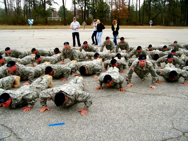 We had just been released to our families after graduation from Infantry One Station Unit Training (OSUT), but then they dropped the company to do pushups as a last smoking. Best pushups I ever did.
