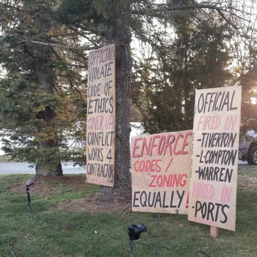 According to the ACLU, Di Paola has had a running feud with Town building officials over zoning issues, and the suit claimed he “posted the first sign after five years of frustration and perceived harassment” from those officials, “both in excessively enforcing codes against him and refusing to enforce building codes against others.”