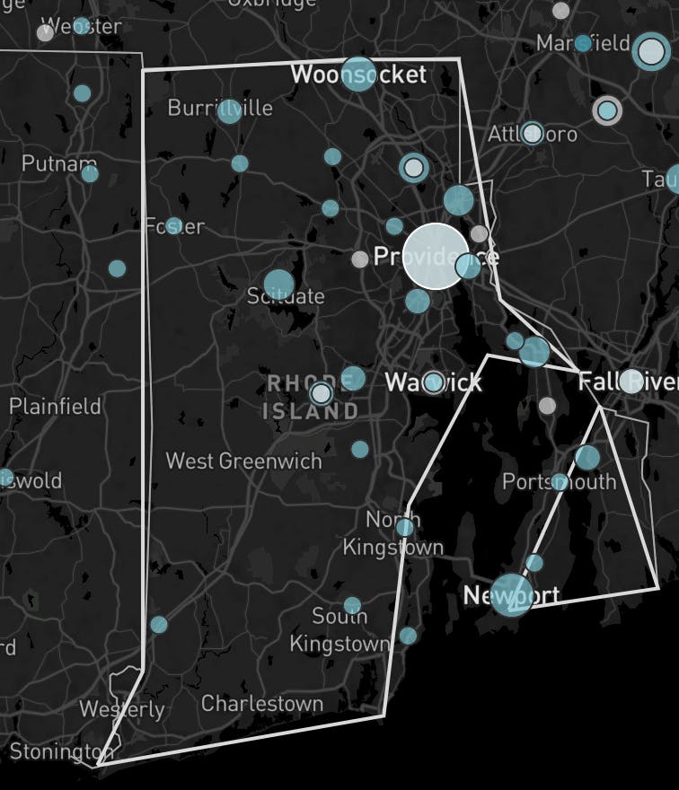 Rhode Island - 52 incidents in 2020, compared to 10 in 2019, and 4 in 2018),
