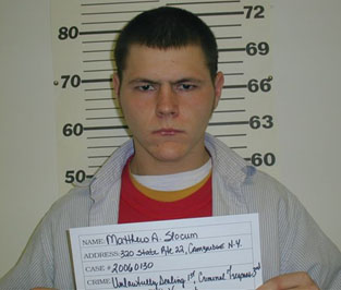Matthew Slocum is approximately 5’11’-6’ tall and 195 lbs. with brown hair. He is believed to have swatstika tattoos on his forearms. Loretta Colegrove is approximately 5’9” tall. They may be traveling in a black 2003 Ford Mustang, with two doors, and bearing N.Y. registration DED1769.
