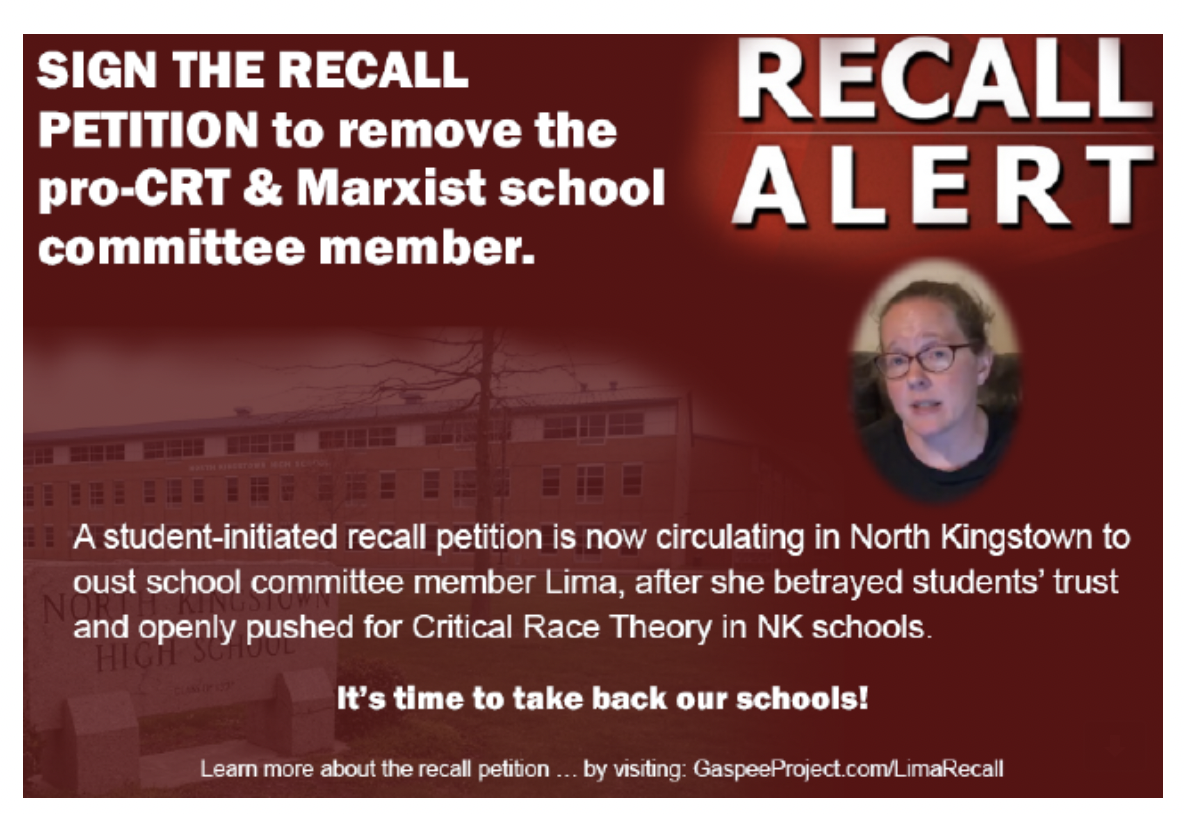 Led by groups including the Gaspee Project, recall organizers claimed Lima was "openly seeking to indoctrinate students with divisive race and gender theories as well as anti-police propaganda."