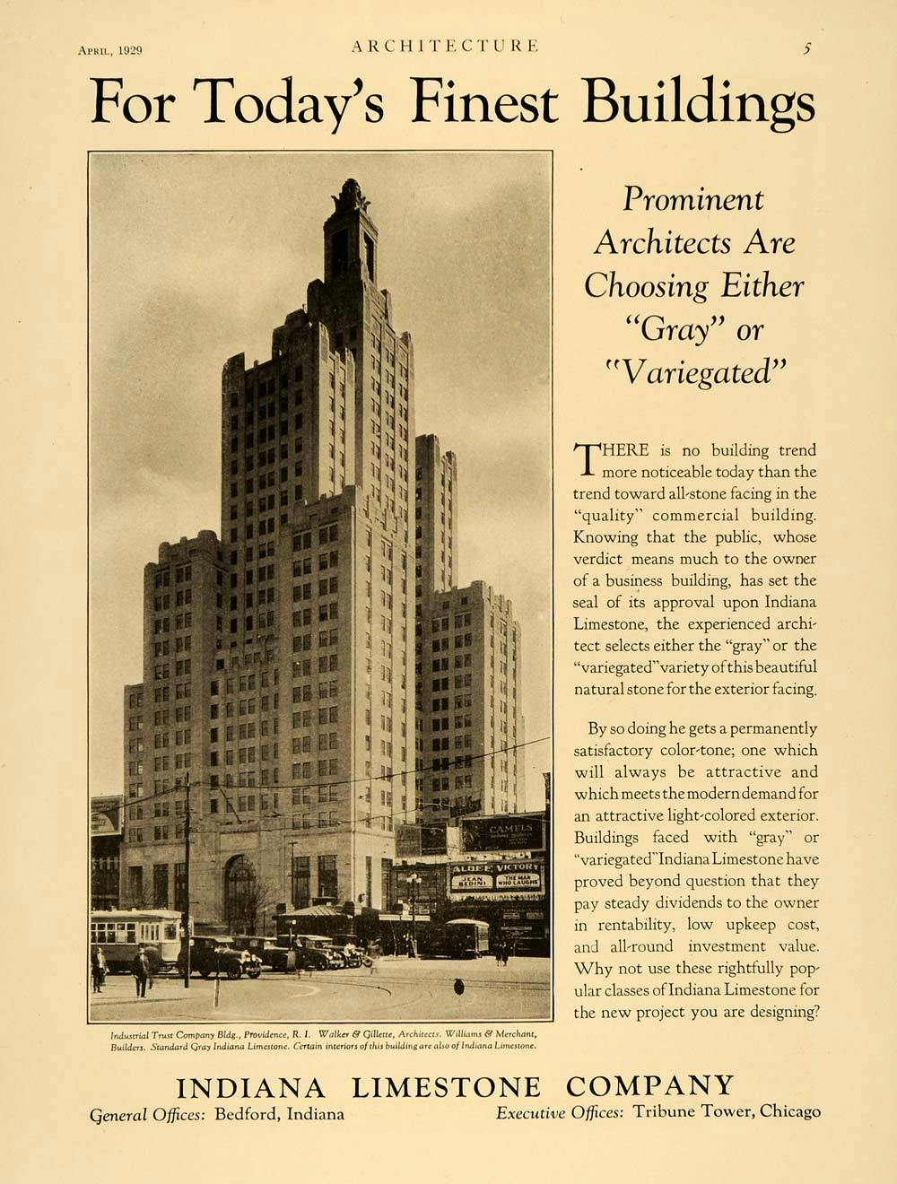 The limestone advertisement illustrates a point about how solidly and beautifully built commercial structures were in the 1920s.