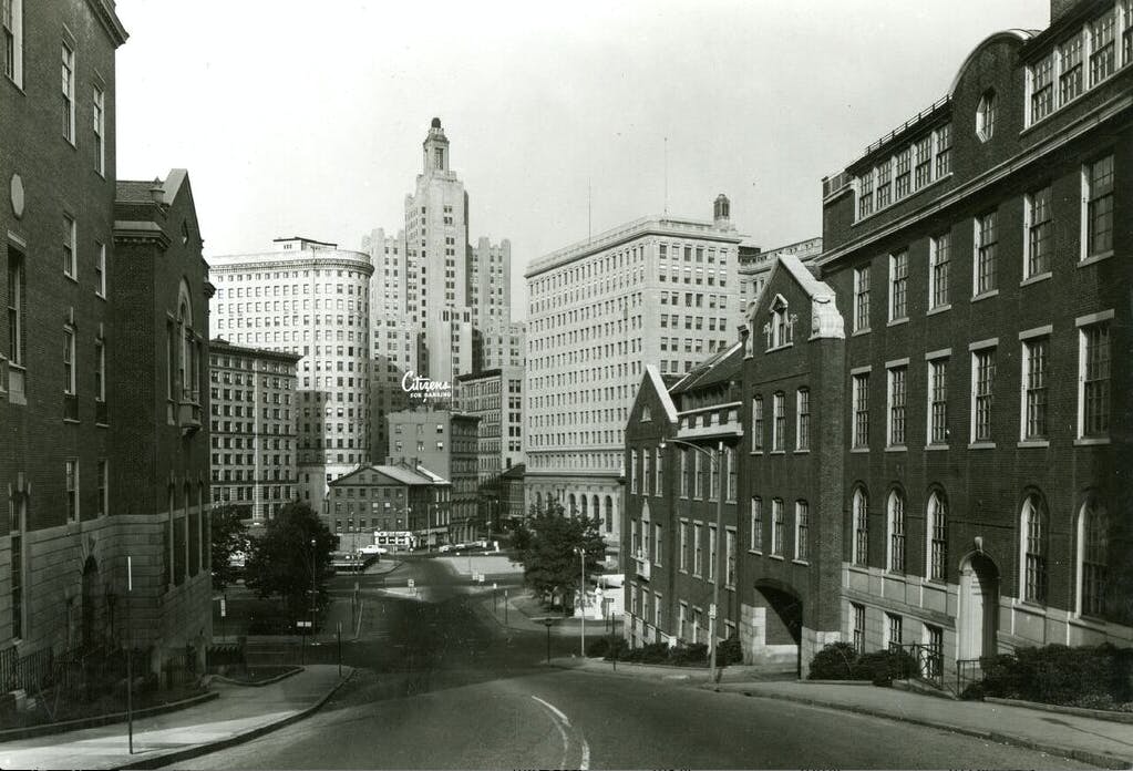 More recent commercial blocks, such as the Hospital Trust Tower of 1973 or the Textron World Headquarters (1969), unwittingly demonstrate why the 1928 Walker & Gillette tower is so far superior. Efforts to amass rentable square footage won out over the intangible benefits of commissioning a work of art that would enrich the commonweal.