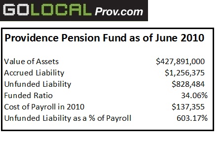 So far, Providence faces an even steeper unfunded liability for these so-called "post-employment benefits"—an estimated total of $1,497,451,000 in 2009, according to the audit. As of that year, the city had funded just 7 percent of the cost. To make matters worse, the city contributed just 76.86 percent of what it should have to the fund in 2010—down from 88.16 percent in 2008.