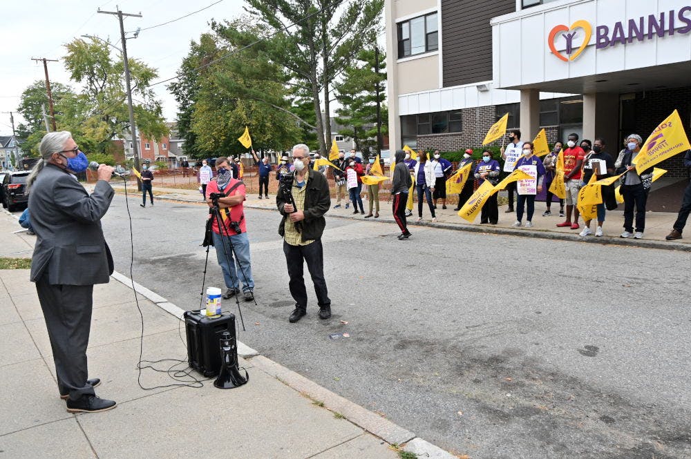 “After submitting contract proposals over one year ago that would create safe staffing standards of 4.1 direct-care hours, wage boosts, affordable healthcare and training opportunities, Bannister Center has not accepted these proposals at the bargaining table, despite caregivers risking personal safety for months throughout the COVID-19 crisis,” says the union.