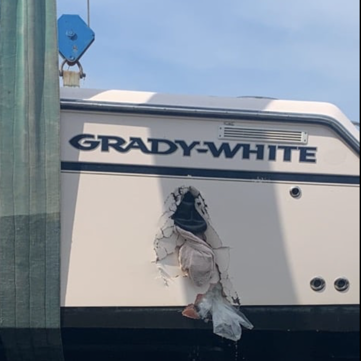“There was a marine information broadcast to keep a lookout for a potential whale,” said Petty Officer Amanda Wyrick, after receiving reports that the boat, “No Plans,” had been struck by an unidentified object in its hull.