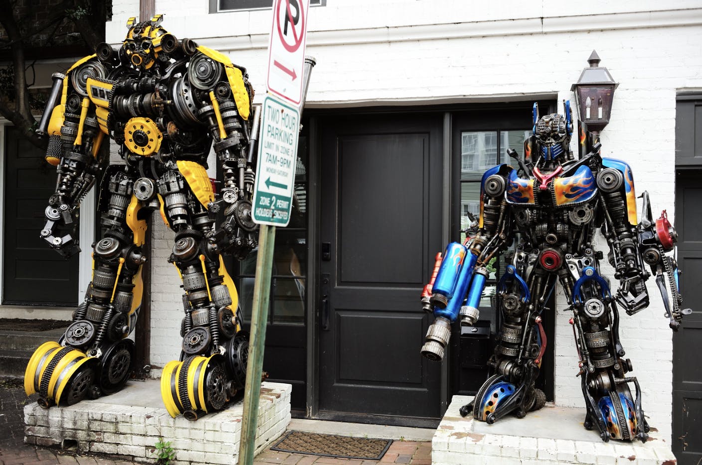 "The neighborhood commission — ANC 2E, which covers Georgetown, Burleith and Hillandale —unanimously rejected Newton Howard’s request for a permit to keep two large sculptures of the iconic Transformers in front of his $4 million home on Prospect Street NW. They stand just a few blocks from Georgetown University, where he works as a research professor in computational neurology and functional neurosurgery. (That’s brain science for the rest of us)," wrote the DCist.