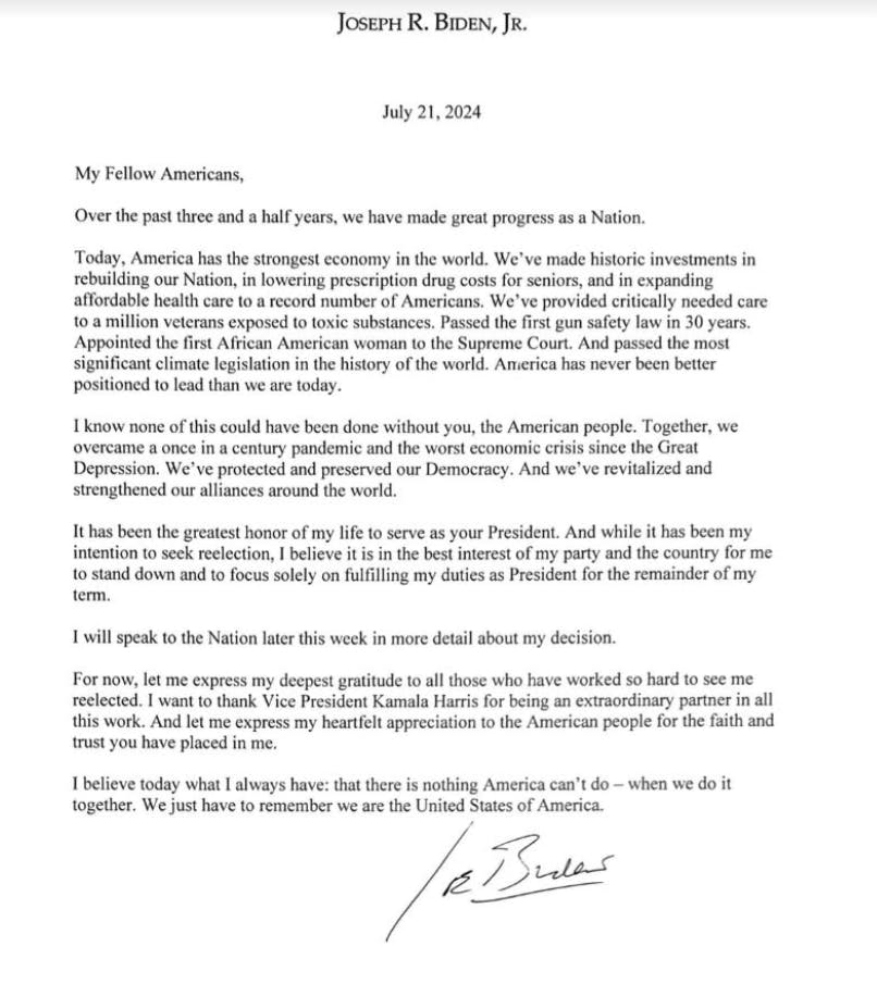 After weeks of political chaos, Biden stepped aside. READ HIS ANNOUNCEMENT BELOW.