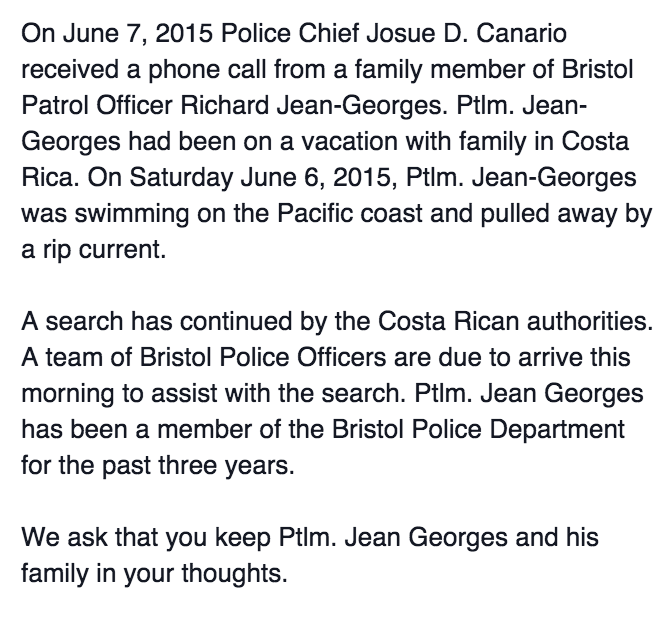 Costa Rican News Reports that Bristol Police Officer is Dead