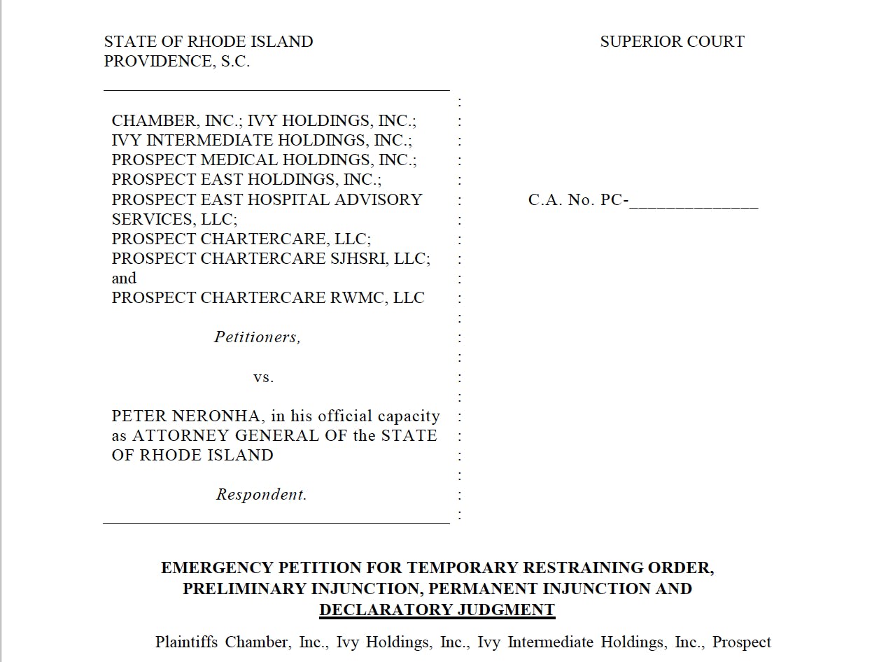 Prospect Files Emergency Petition for Temporary Restraining Order Against AG Neronha