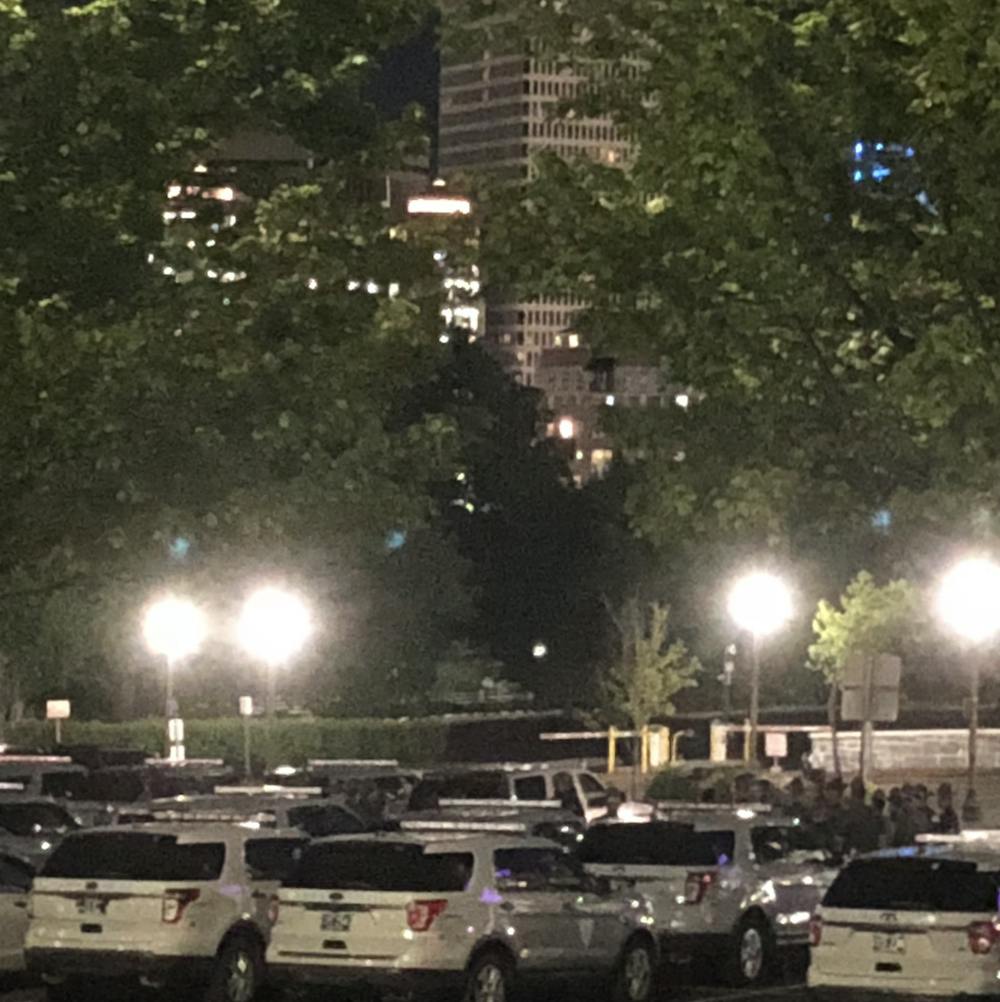 Close to 60 police vehicles and officers — both Providence Police and Rhode Island State Police — are currently stationed around the State House, Providence Place Mall, and Providence Amtrak train station.