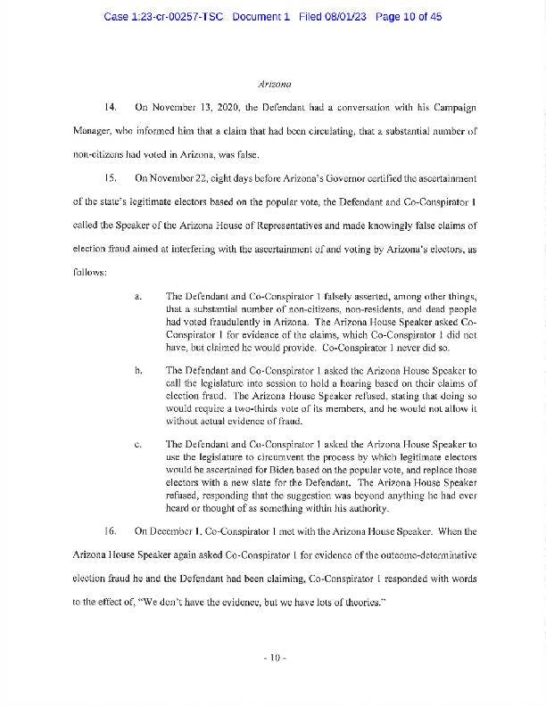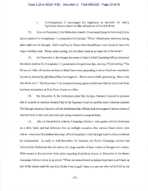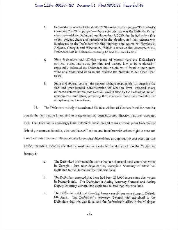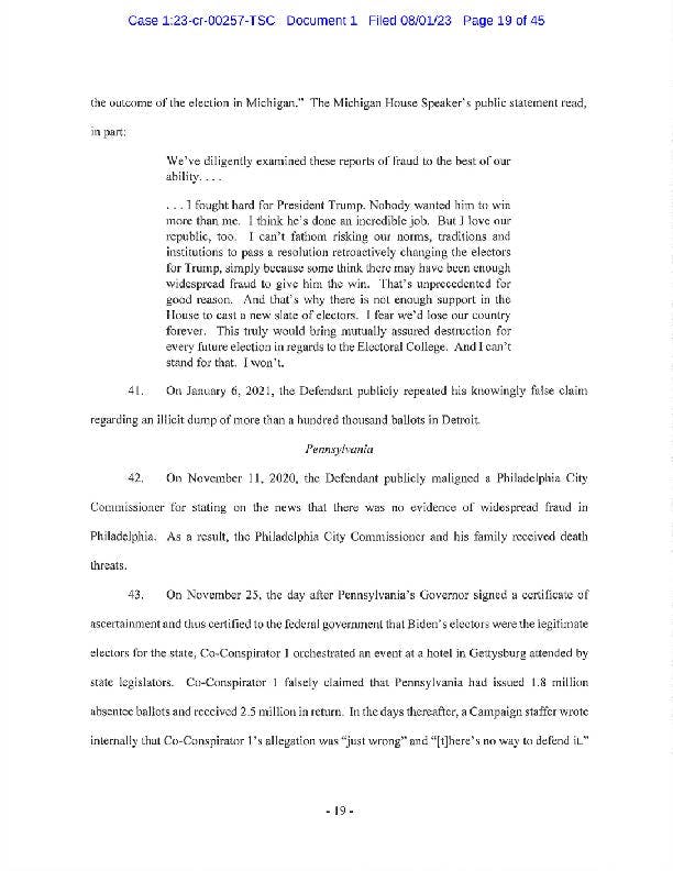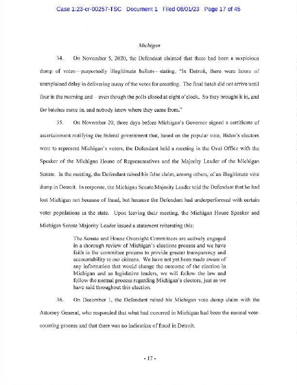 "I will have more to say about the government’s case after reviewing the indictment. The former president is entitled to the presumption of innocence but with this indictment, his candidacy means more talk about January 6th and more distractions.