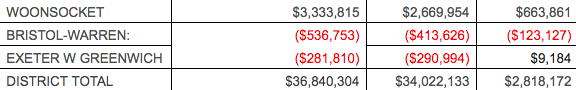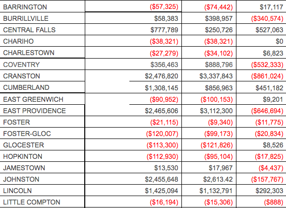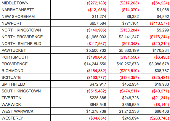 Those gaining the most? Central Falls ($527,063), Woonsocket ($663,861) and Providence ($3,986,678).