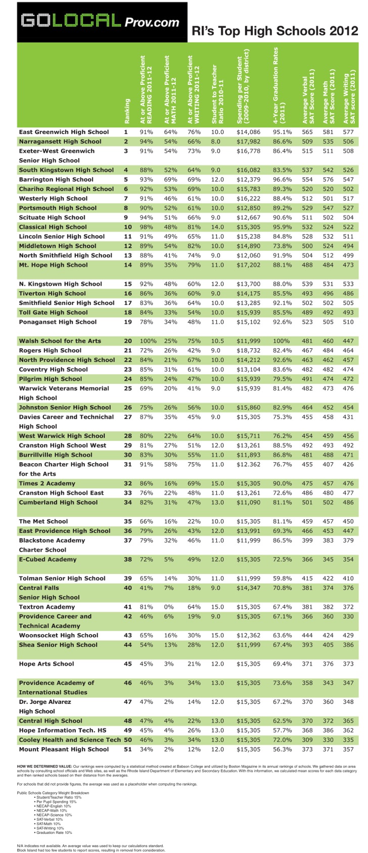 For a printable version of RI's Top High Schools 2012, with the full chart of rankings and summaries of key articles, Download PDF