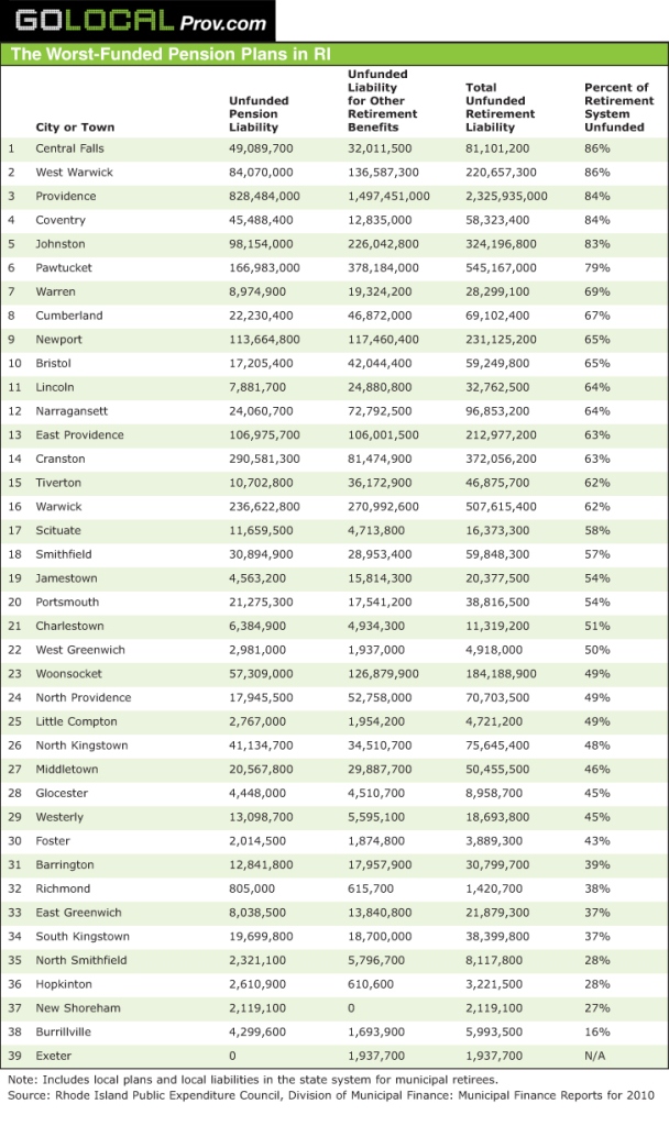 Below is GoLocalProv’s ranking of the worst funded retirement systems in Rhode Island.