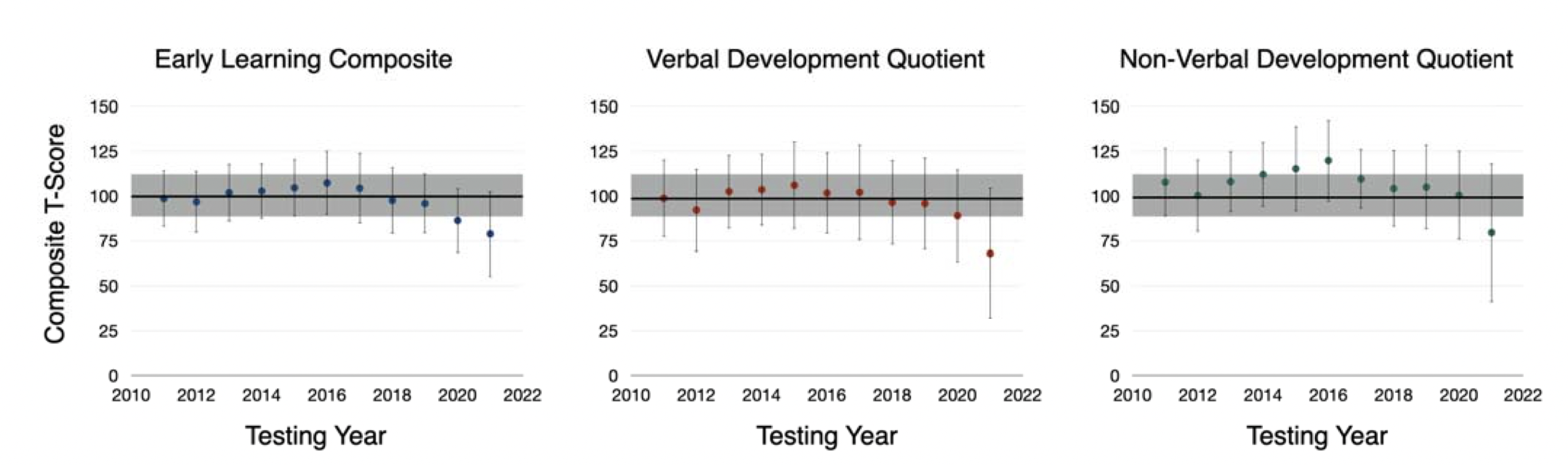 According to the longitudinal study — which has yet to be peer-reviewed — mean early cognitive skill levels for children aged three months to three years old dropped from around 100 in the decade before the pandemic to below 80 during it.