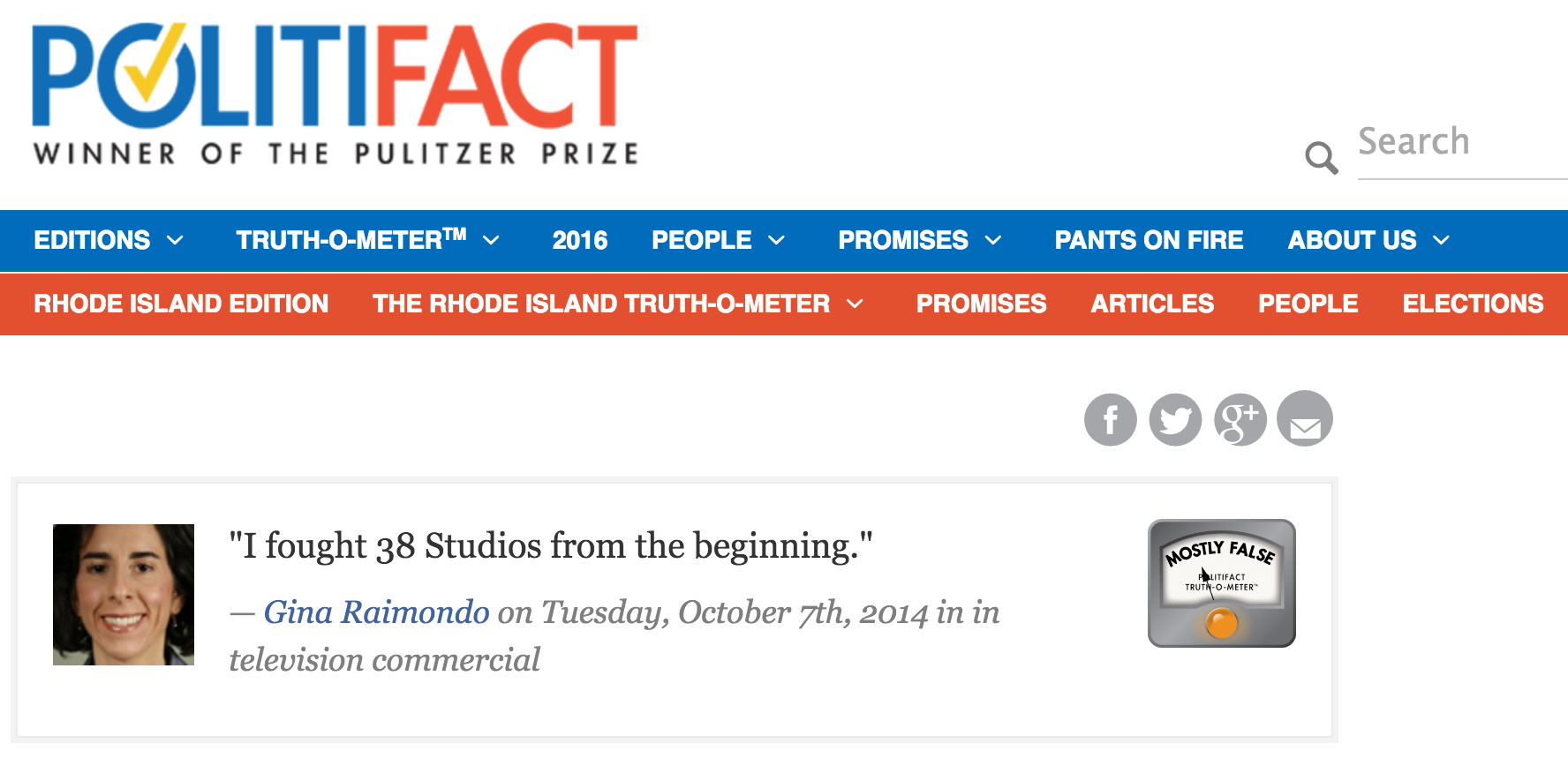 On Thursday, Raimondo reaffirmed the claim that she was "against the deal from the beginning," but her claim in 2014 that she battled the deal from the get-go was proven to be “mostly false,” according to an analysis by Politifact.