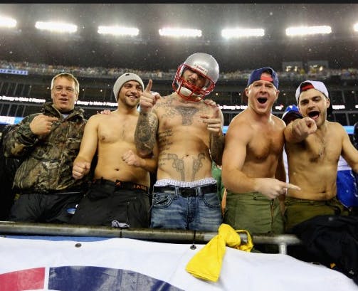 It's football season and the New England Patriots are on roll early on. Show your team spirit and go to game shirtless before it gets too cold.