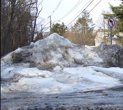 - Locate snow collection sites adjacent to or on pervious surfaces in upland areas, away from water resources and wells. This will allow snow melt to filter into the soil, leaving behind sand and debris. The latter should be removed as soon as possible but no later than springtime.