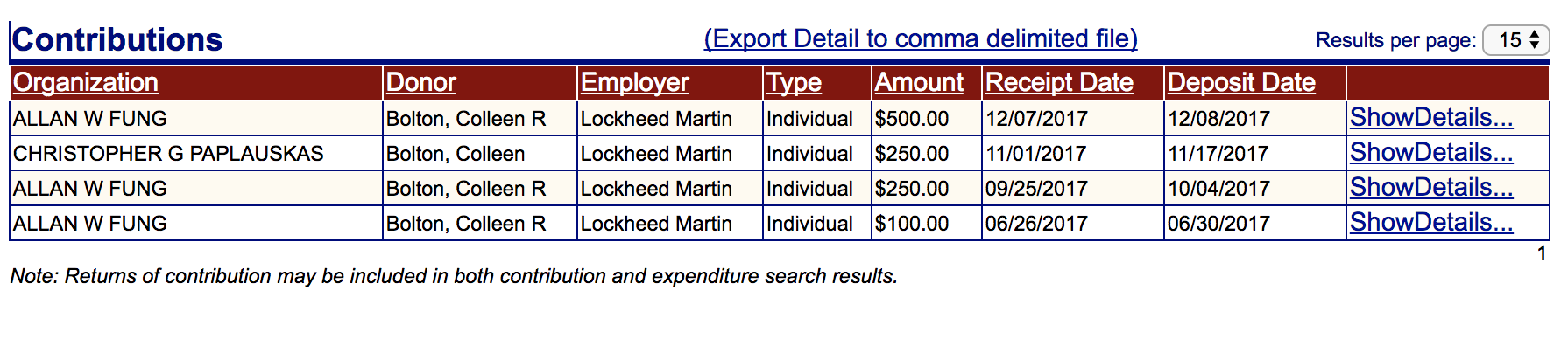 Bolton has also donated $3,875 to Cranston Mayor Allan Fung. And, Cranston Councilman Christopher Paplauskas has received $100 from Bolton — as well as $250 from another member of the Bolton household, Colleen Bolton in November of 2017.