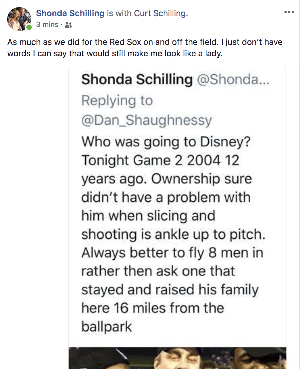 Schilling’s wife Shonda took to Facebook to criticize the snub.