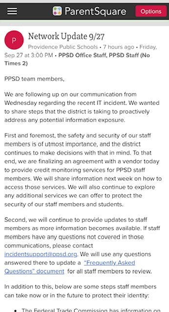 GoLocal reported this week that PPSD has refused to answer critical questions about the cyberattack and its potential impact on students, families, and employees.