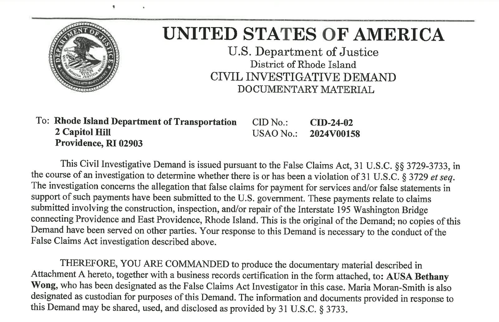 On Monday night, GoLocal reported that an engineer for a bid on the Westbound Washington Bridge project in 2020 warned the Rhode Island Department of Transportation about a potential design flaw relating to the failure of pin joints in the project.