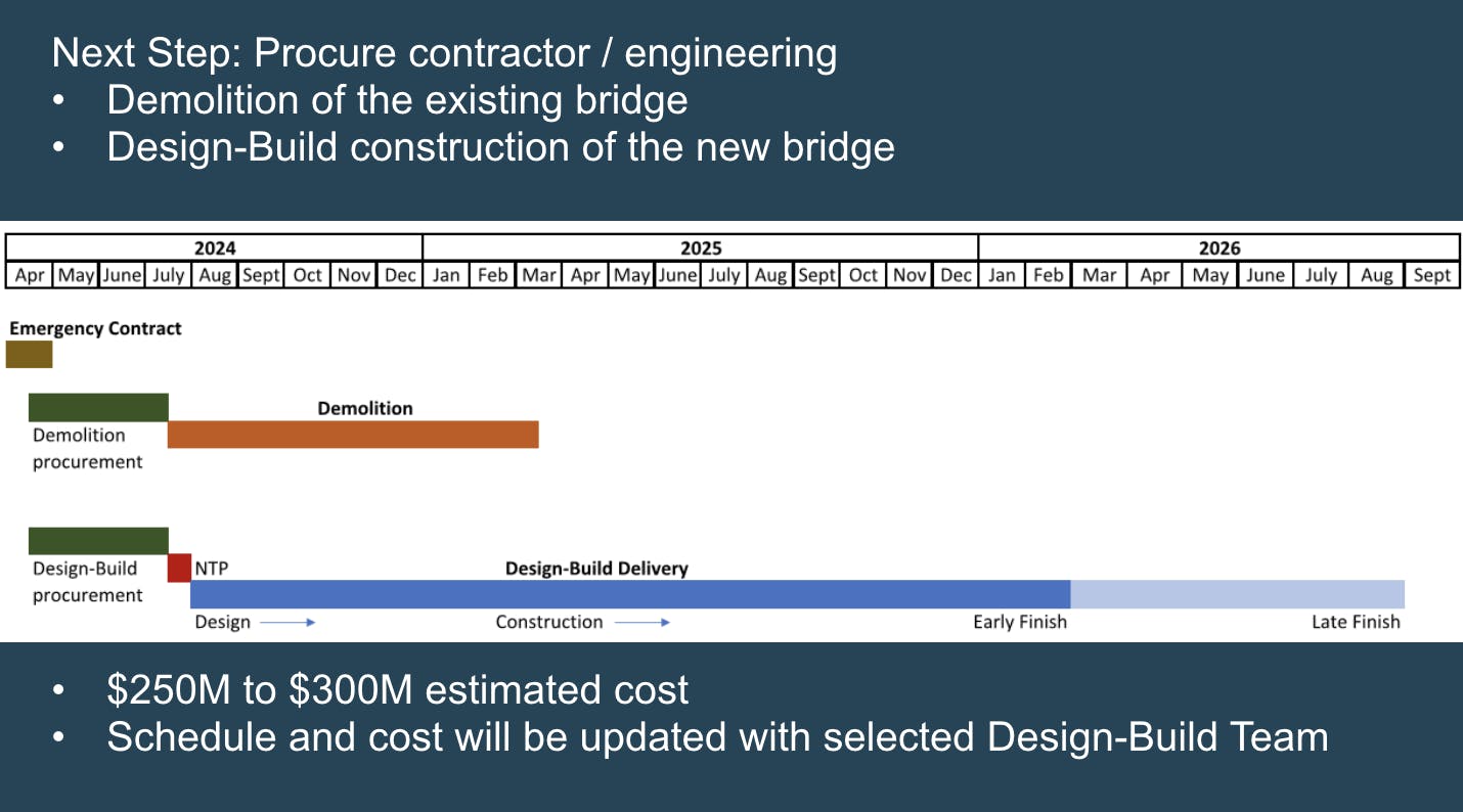 Then in March of 2024, state officials unveiled a new timeline and said a new bridge was slated to be completed by 2026 - before no companies bid on a request for proposals for a rebuild.