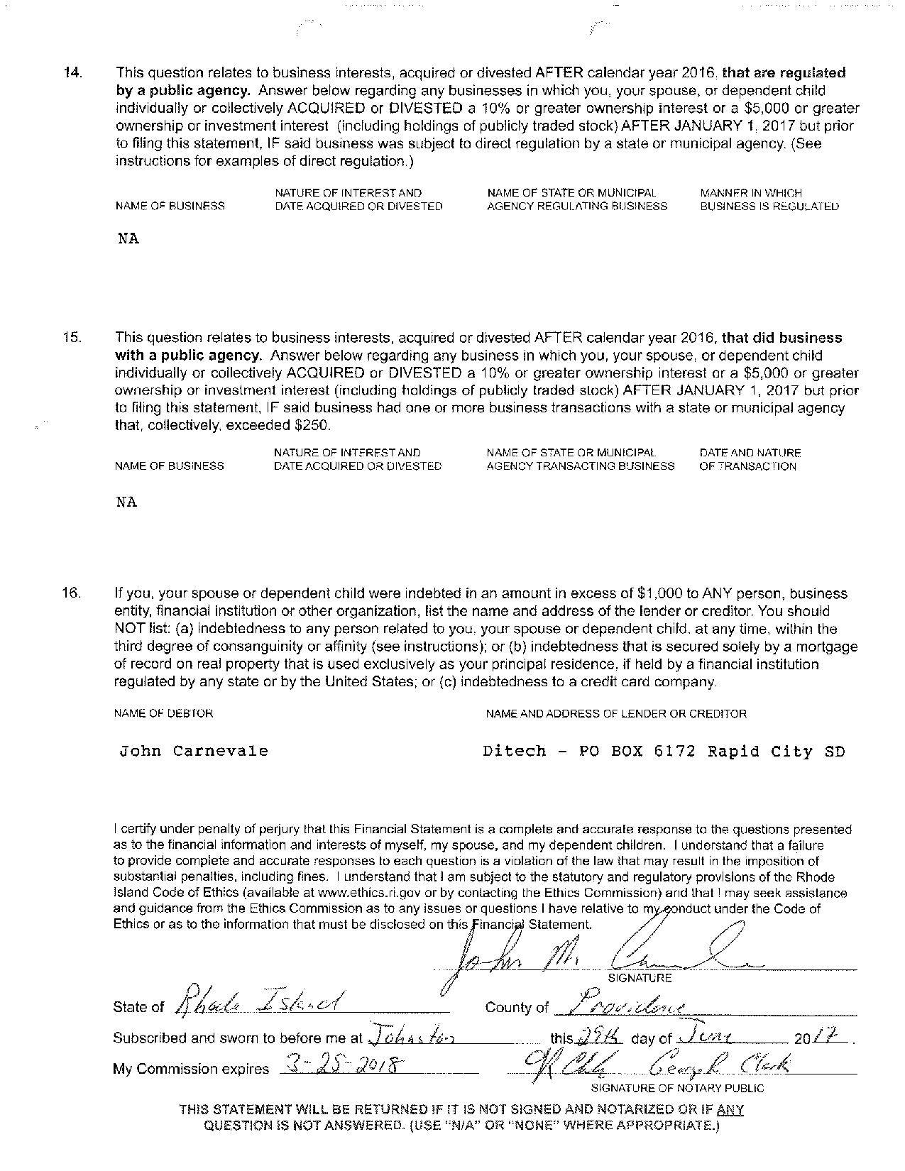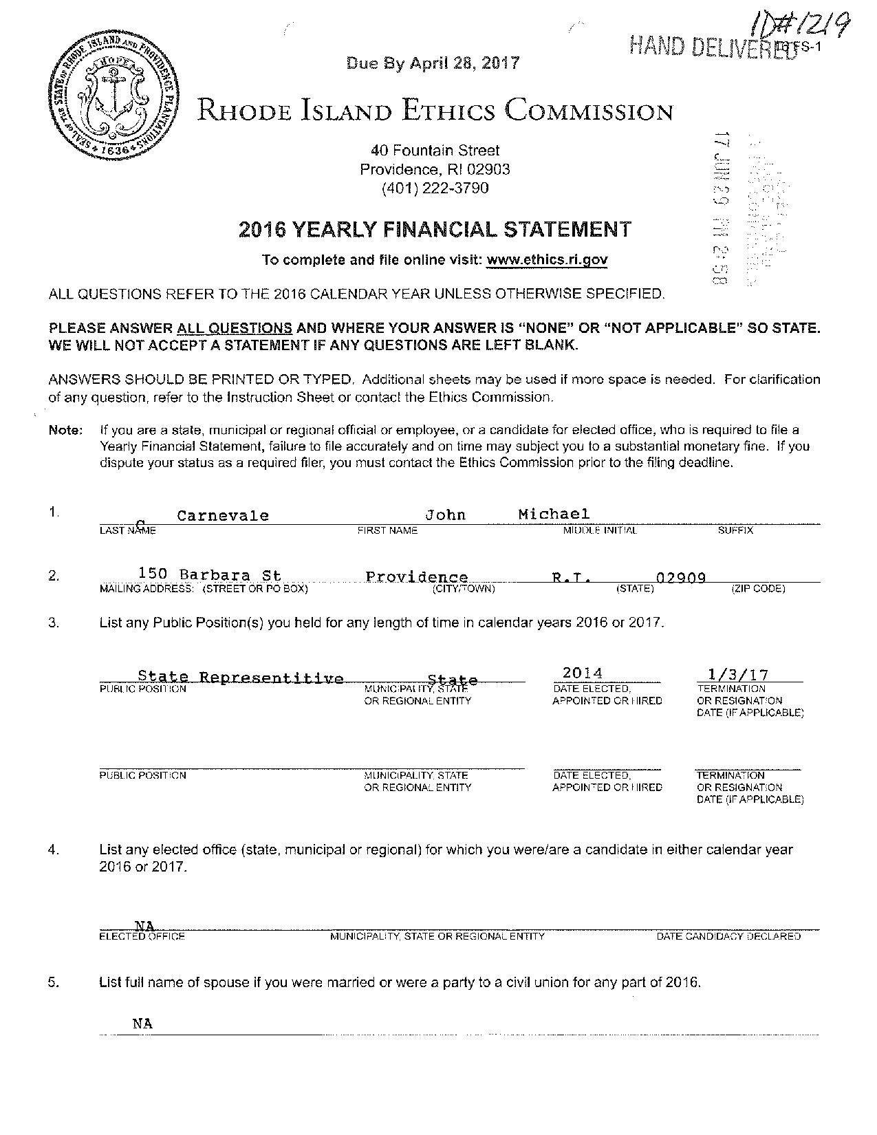 Despite his disqualification in 2016, Carnevale has continued to submit campaign finance reports through the first quarter of 2018, listing 150 Barbara Street as his address.