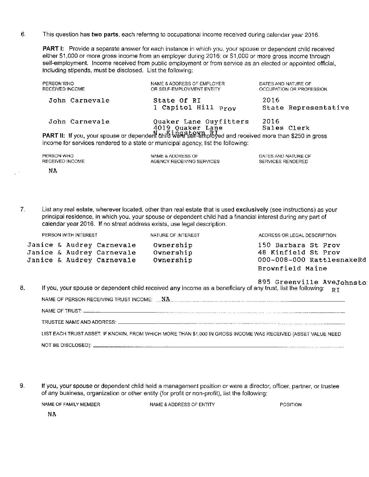 According to a GoLocal review, Carnevale is registered to vote at the 150 Barbara Street address that was deemed in question when a WPRI 12 investigation found that Carnevale was living at a separate residency outside the district -- in Johnston.