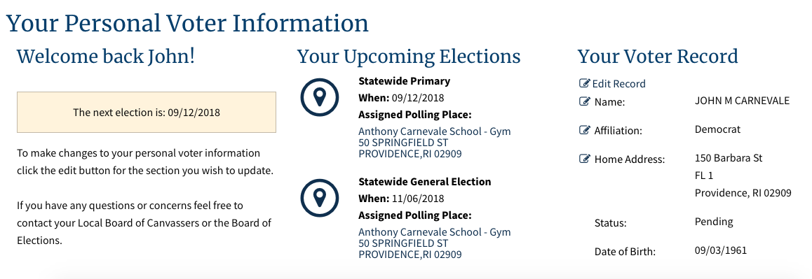 GET THE LATEST BREAKING NEWS HERE -- SIGN UP FOR GOLOCAL FREE DAILY EBLASTThe Rhode Island Secretary of State's office confirmed Friday that voter information available on its website is up to date every 24 hours. It currently shows Carnevale registered to vote at 150 Barbara Street.
