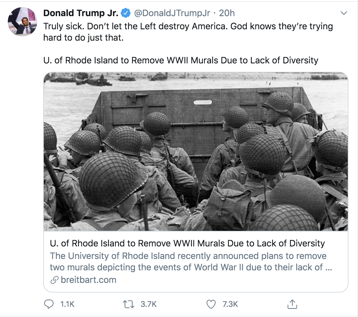 On Thursday, Donald Trump Jr. weighed in on URI’s decision to remove WWII murals on campus due to the “lack of diversity.”