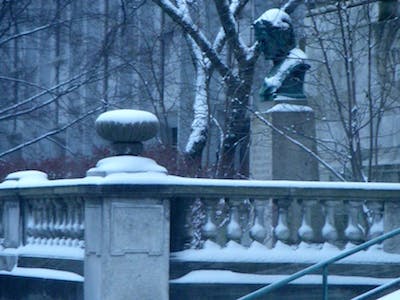 The bust of Dante in front of the John Hay Library (1910) seems to frown at the crown of snow on his poetic pate, but scholars assume that he adores the classical balustrade upon which his gaze is so clearly affixed. Dr. Downtown hesitates to contemplate the degree of ire his visage would reflect if he were to glance at the Rock to his right.
