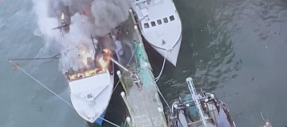 DRONE PHOTOS: Fishing Boat Burns in Narragansett