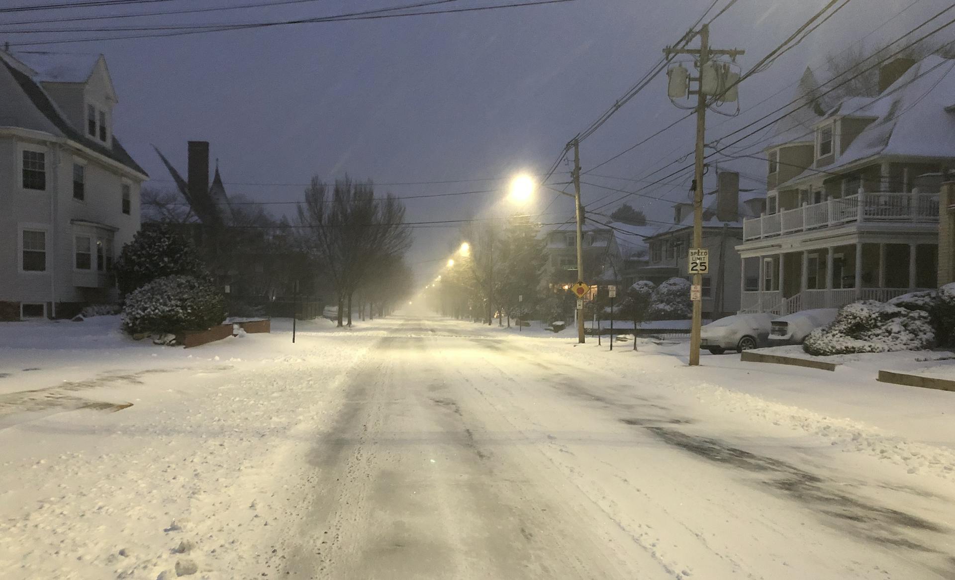 Overnight in Providence, the city was hit with about 4 inches of light powdery snow and strong winds were blowing overnight and into the morning.