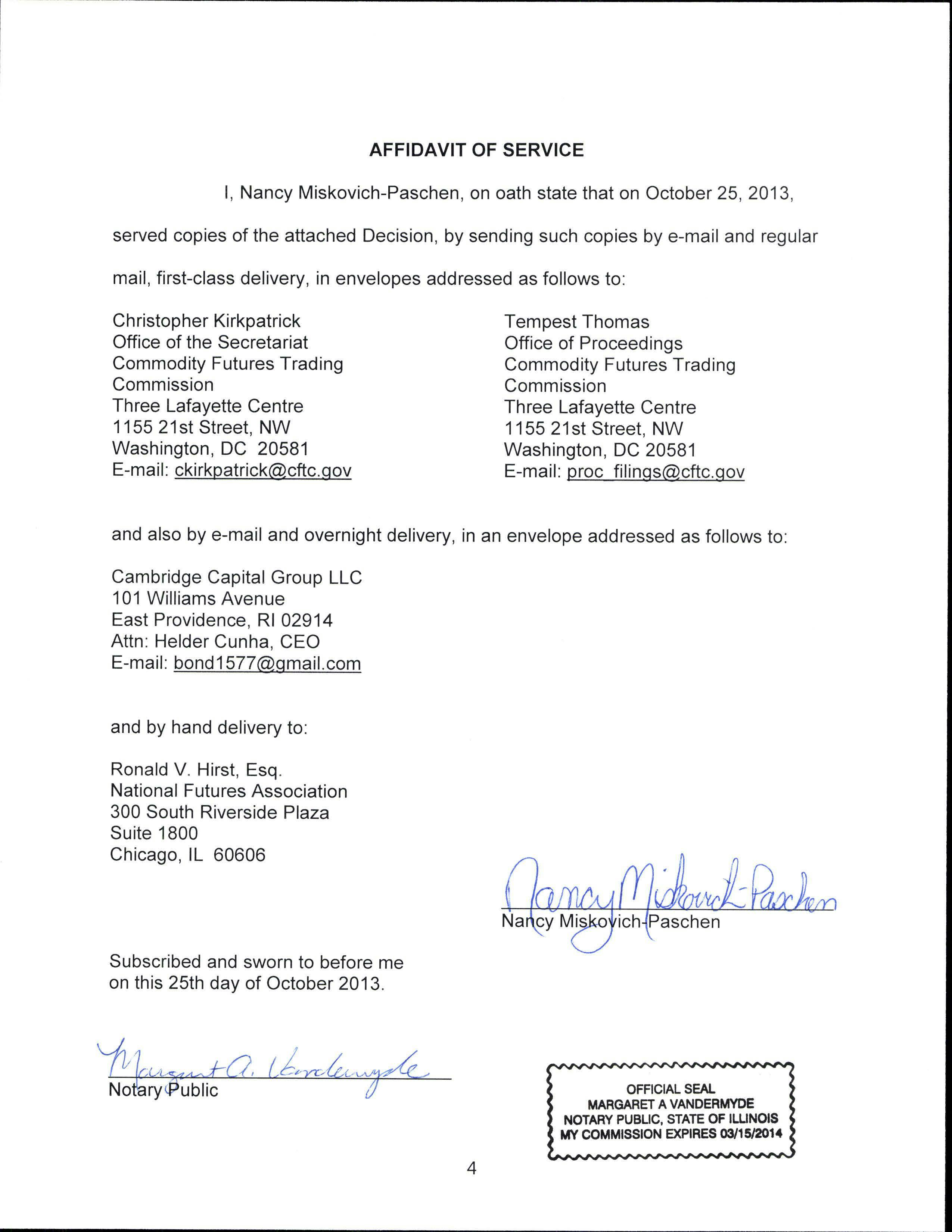 Rhode Island Secretary of State Ralph Mollis revoked Cambridge Capital Group’s certificate of corporation in May of 2015.