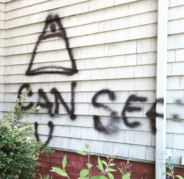 "When I first saw it, I thought I would be sick," said Kathy Reavis, who said the graffiti occurred while the family was out of town. "I was informed by the police that it wasn't an isolated incident, that we weren't targeted. But I couldn't walk on that side of the house until plants started growing over it. It took the city about four weeks to come clean it up."