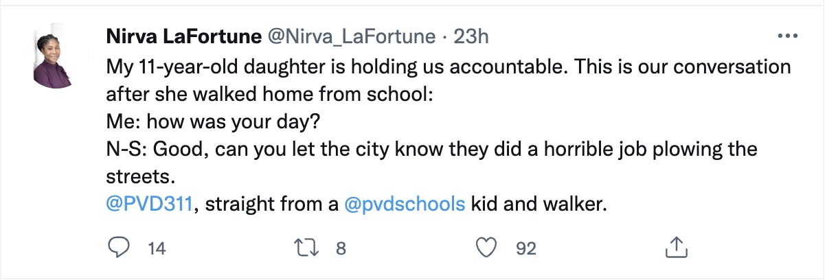 @PVD311, straight from a @pvdschools kid and walker.”