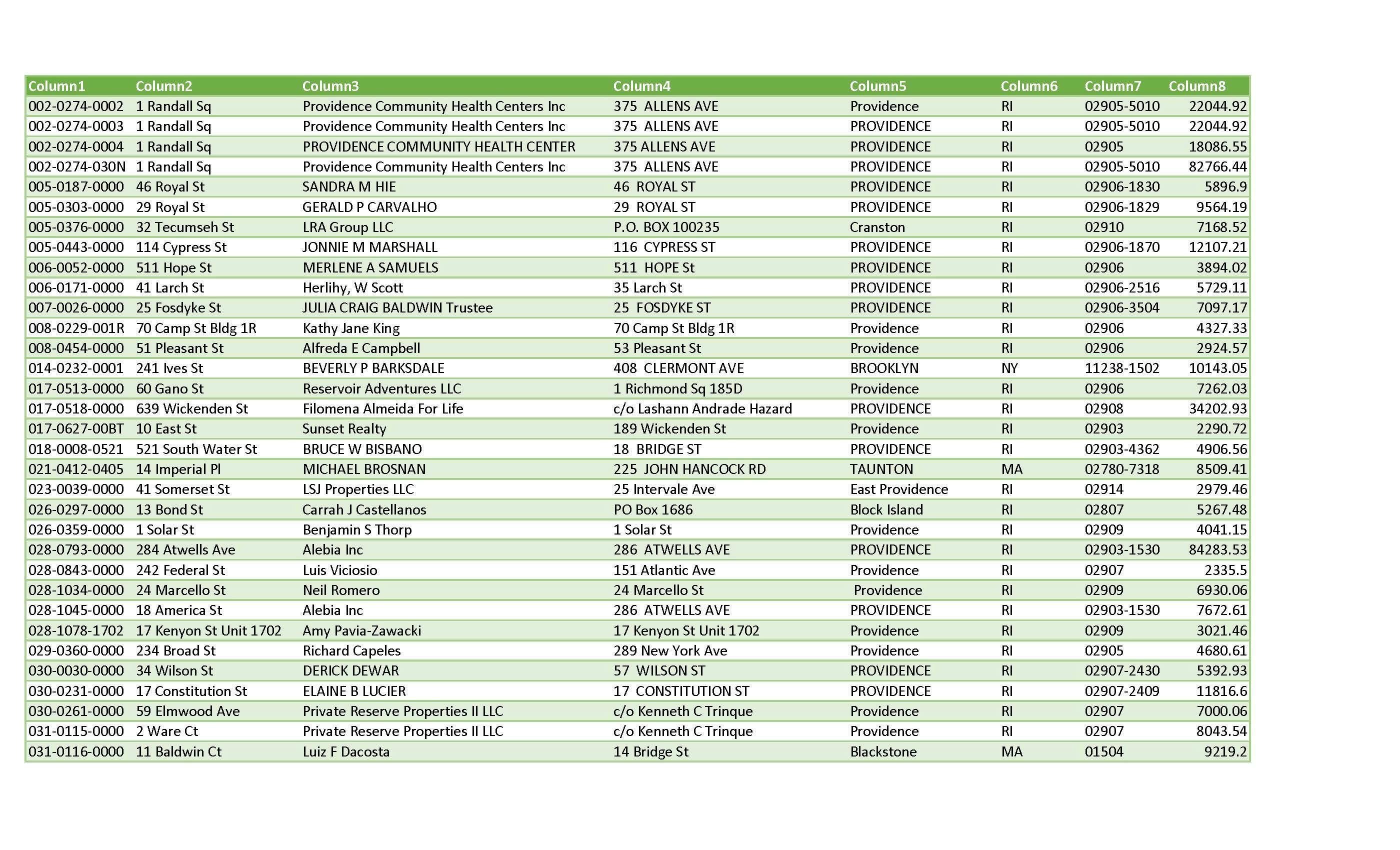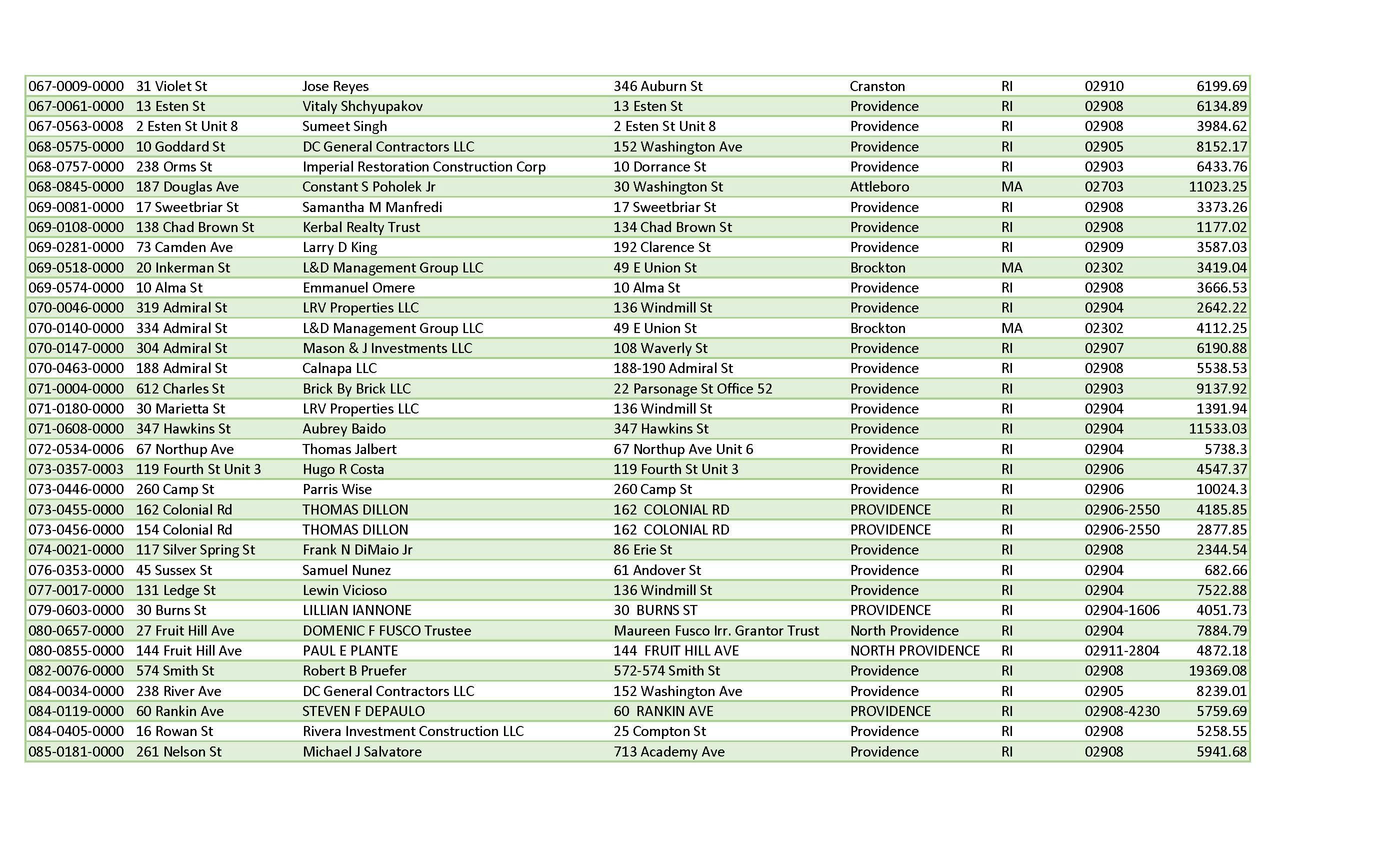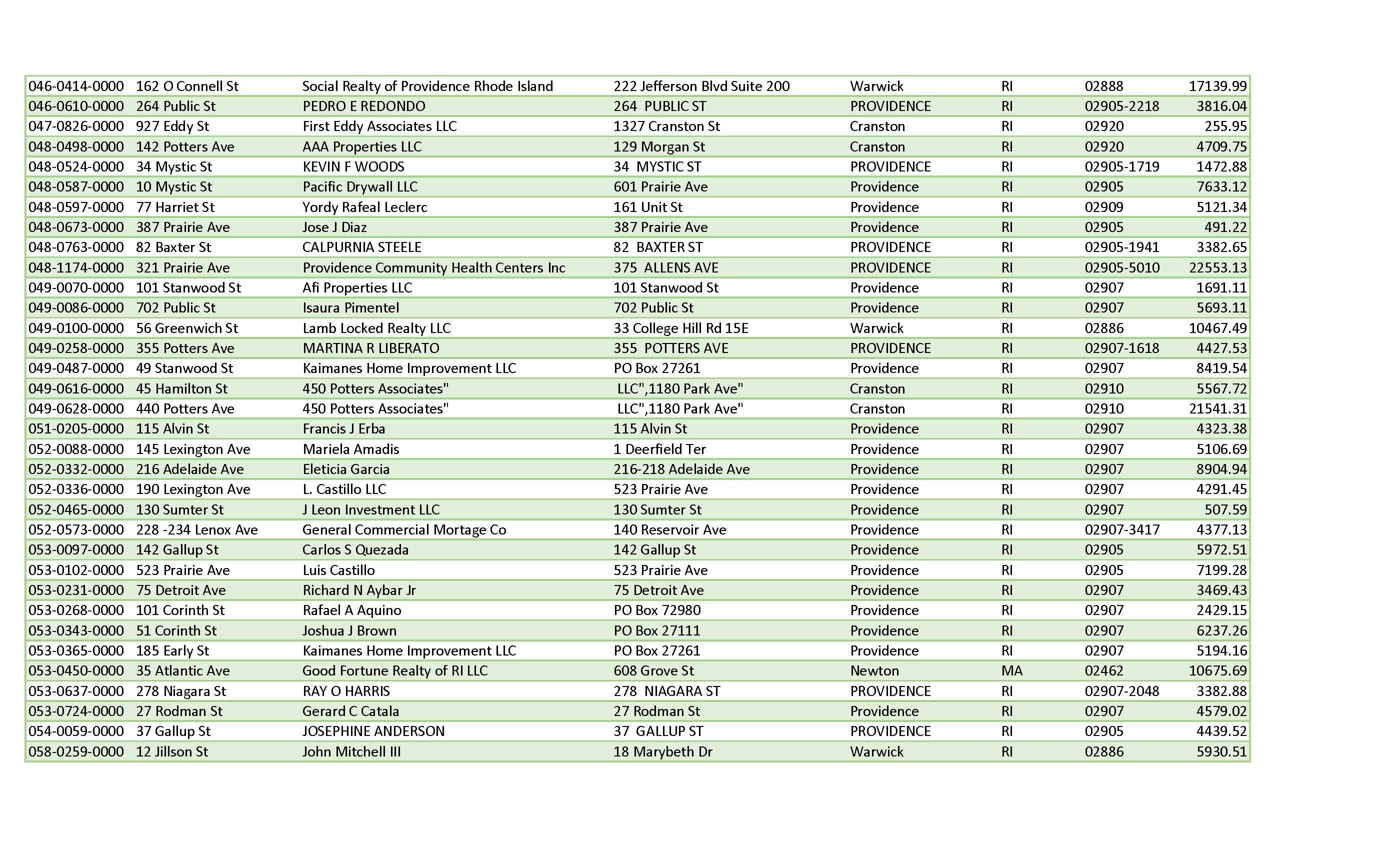 “Additionally, if a property's taxes are sold at tax sale, the owner has a year to remove the lien on the property through the City. This tax sale was delayed in order to create a platform conducive to the COVID-19 response (digital) and is the smallest of the last 3 years: 336 in 2018, 239 in 2019, 160 in 2020,” added Crowell. Some of the properties that have outstanding tax bills are commercial properties that owe more than $10,000. But, the Elorza administration has moved forward to lump both commercial and residential properties together for auction. In New York, legislators are working to block Mayor Bill de Blasio's September tax sale auction.