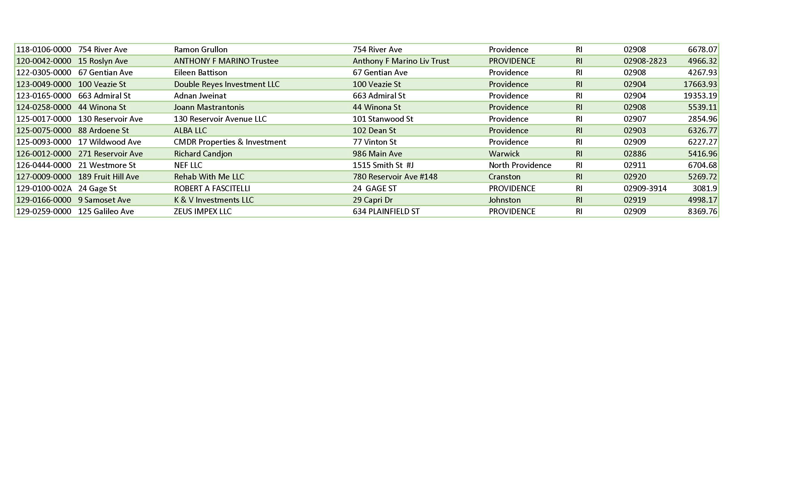 SEE THE CITY OF PROVIDENCE'S LIST OF PROPERTY TO BE AUCTIONED BELOW